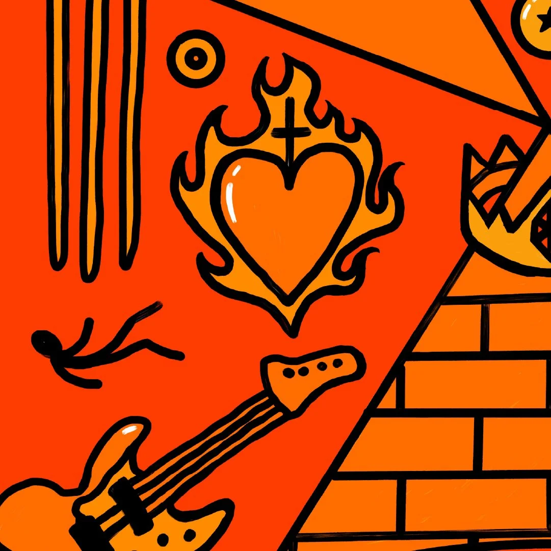 This artwork was created for RE:Issues, a pop-up exhibition of album artworks and tales in which artists reimagine album artworks that were important to them. The exhibition was hosted by Cabbage & Kraut and The Big Romance bar. Channel Orange by Frank Ocean will always have a place in my heart as it was the catalyst for Frank coming out publicly around the same time I was realising I was bisexual. It was the soundtrack to many summers in my life. The original cover was very minimalist, simply the title on Orange, so I decided to do a maximalist version with each album track represented by its own illustration in the piece.